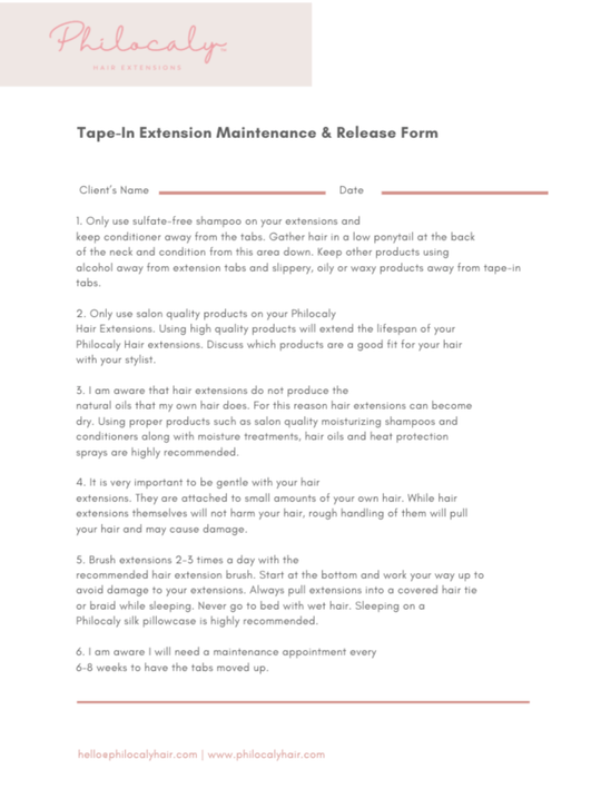 Download our FREE General Liability Stylist Release & Maintenance Forms for all of your tape-in and weft applications. Your file(s) will be available to download once checkout is complete. Each download includes 1 PDF.